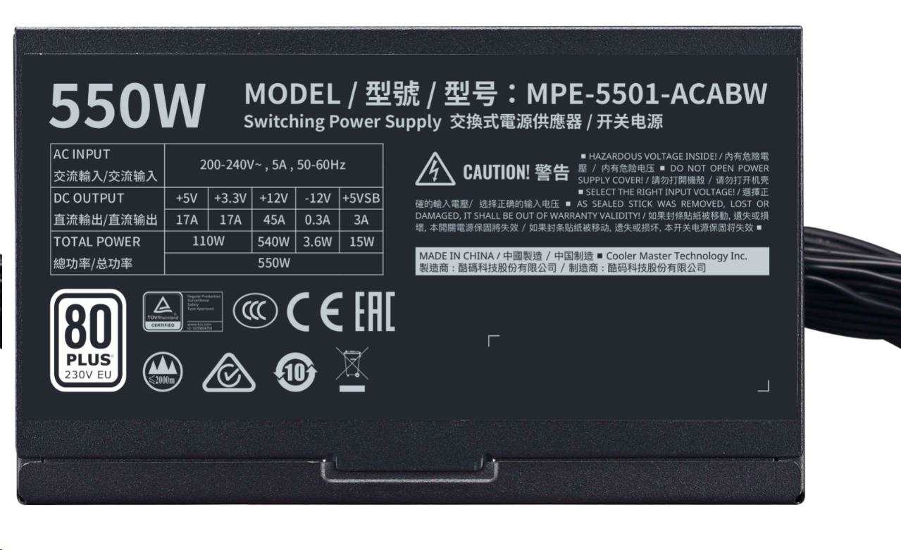Cooler Master zdroj MWE White 550W V2, 120mm, 80+