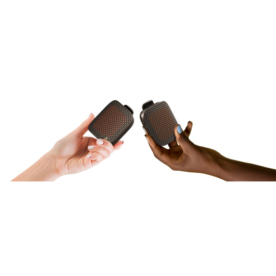 Tento kompaktní reproduktor (84 g) je navržen pro dobrodružství v přírodě a lze jej snadno připnout, zavěsit pomocí šňůrky nebo připevnit pomocí magnetu.