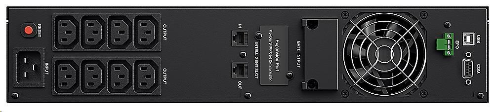 | Dodávka obsahuje | UPS, Uživatelský manuál, Rackmount lišty, Rackmount úchyty, Telefoní kabel, USB kabel, Seriový kabel (RS232), M5X8L (8), M5X12L (12), Plastové podložky (8) Záslepka (12), PowerPanel® Business Edition software CD. Gumové podložky pod UPS(12) |