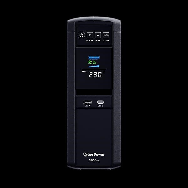CyberPower CP1600EPFCLCD s výstupem ve tvaru čisté sinusoidy chrání střední až špičkové počítačové systémy, servery a síťový hardware, které používají konvenční zdroje napájení a zdroje s aktivní korekcí účiníku (PFC). Tato UPS navržená s technologií GreenPower UPS™ pro zlepšení provozní účinnosti a minimalizaci spotřeby energie přináší významné úspory nákladů na energii oproti konvenčním systémům UPS. UPS poskytuje automatickou regulaci napětí (AVR) pro udržení stabilního napětí pro připojená zařízení. Produkt je vybaven ochranou datové linky s vysokorychlostním přenosem pro ochranu komunikačního zařízení před přepětím/špičkami a rychlostí datového přenosu 1 Gbps. S naklápěcím barevným LCD panelem mohou uživatelé na první pohled sledovat klíčové informace o napájení a baterii. Software pro správu napájení PowerPanel umožňuje uživateli provádět monitorování a konfiguraci v reálném čase.