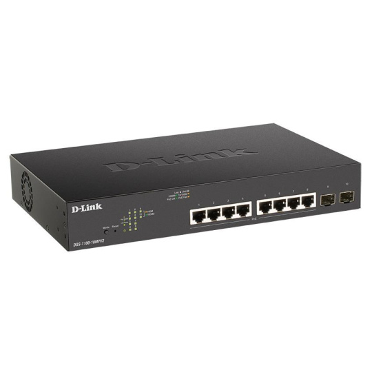 D-Link DGS-1100-10MPV2 10-Port PoE+ Gigabit Smart Managed Switch, 8x PoE gigabit, 2x SFP, PoE budget 130W