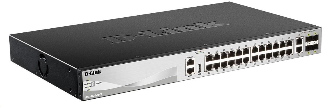 D-Link DGS-3130-30TS/E L3 Stackable Managed Gigabit Switch, 24x gigabit, 2x 10GBASE-T, 4x SFP+