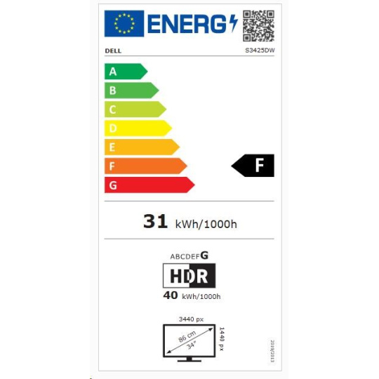DELL LCD S3425DW - 34"/VA/LED/3440x1440/21:9/120Hz/1ms/3000:1/300 cd/m2/HDMI/DP/VESA/3YNBD (210-BQWR)