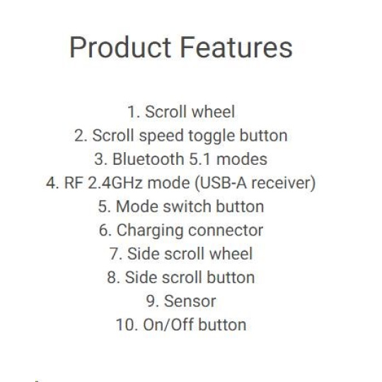 Rozhraní myši:Bezdrátová Wi-Fi; Specifikace myši:S kolečkem.