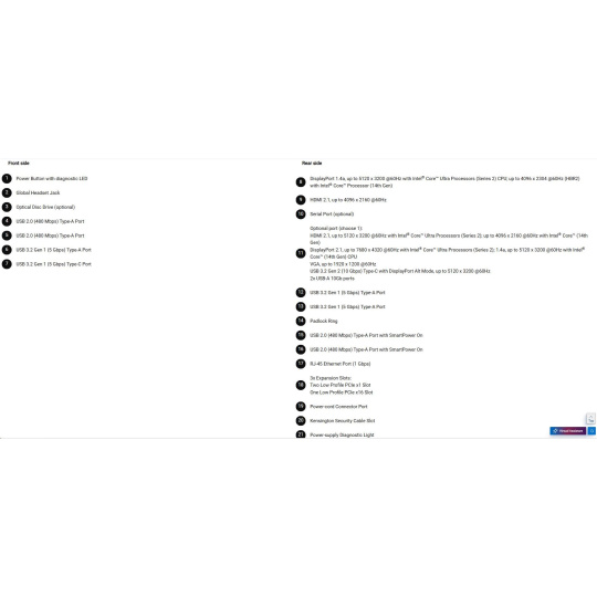 | Intel® Core™ Ultra 7 265 vPro® (13 TOPS NPU, 20 cores, up to 5.3GHz) |