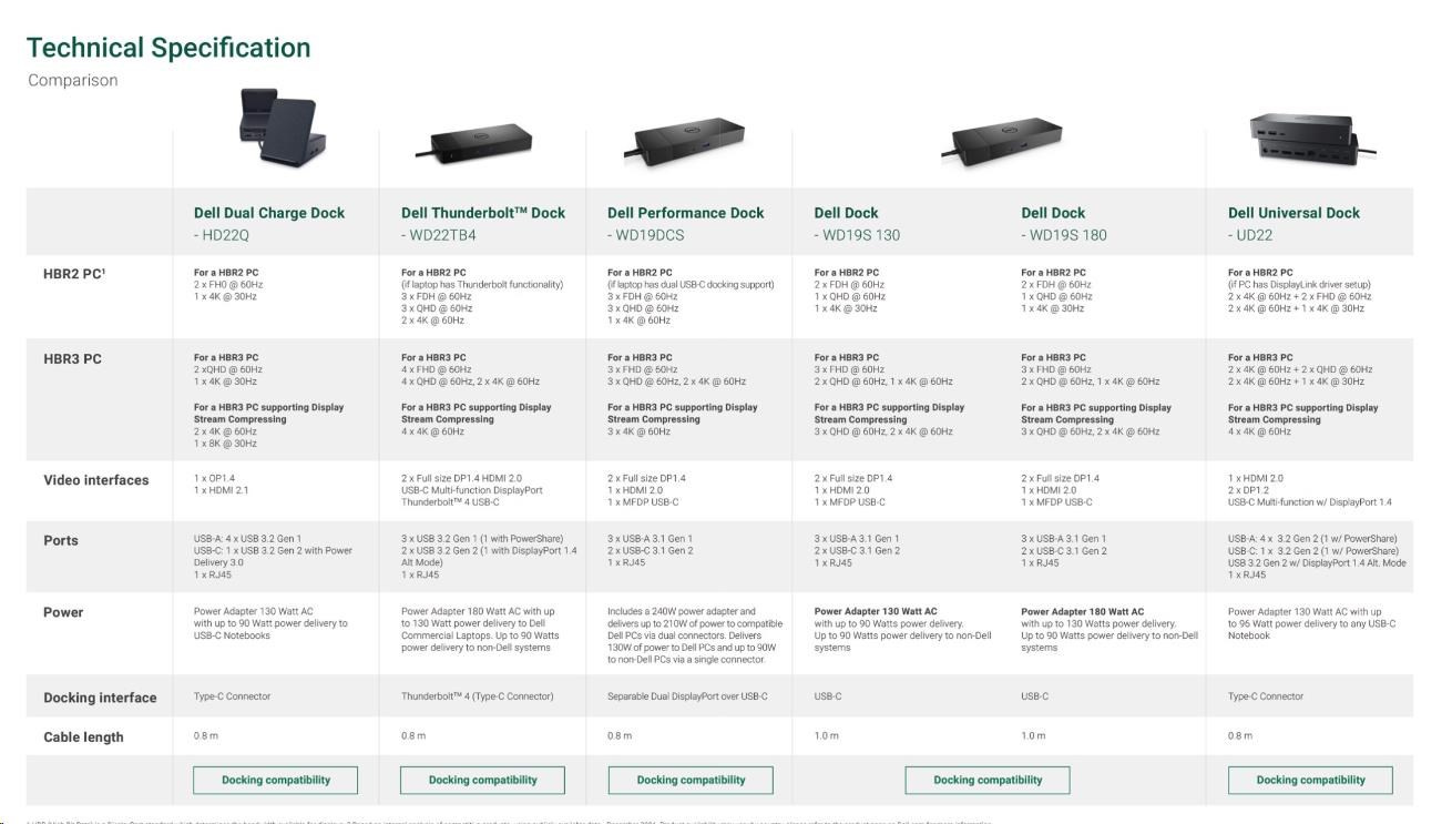 Počet DP portů:2; Počet HDMI portů:1; Počet VGA portů:0; Počet USB-C:2; Počet USB-A:3; LAN:1Gbps; Max. počet ext.monitorů:2; Audio:Combo; VESA podpora; PD (max.W):210.
