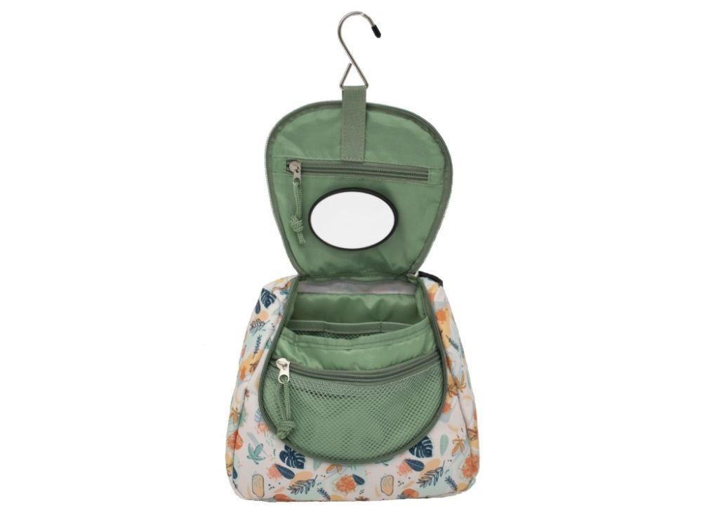 Kosmetická taška na zavěšení, v neutrální zelené barvě, s roztomilým lenochodem, je originální dětskou toaletní taškou na cesty. Velice pevná a odolná kosmetická taška, se spoustou kapsiček a odnímatelným zrcátkem, v pohodě pojme hygienické potřeby vaší holčičky nebo chlapce. Vodoodpudivý materiál umožní dětem používat tašku v koupelně i ve sprše. Díky háčku tašku jednoduše zavěsíte na háček nebo vodovodní baterii a děti mají své toaletní potřeby pohodlně po ruce..