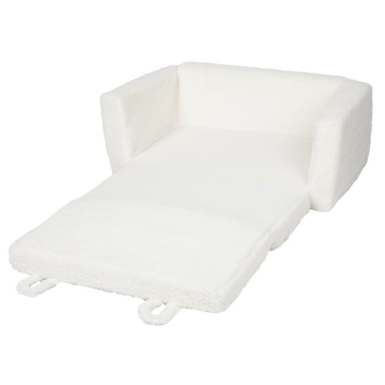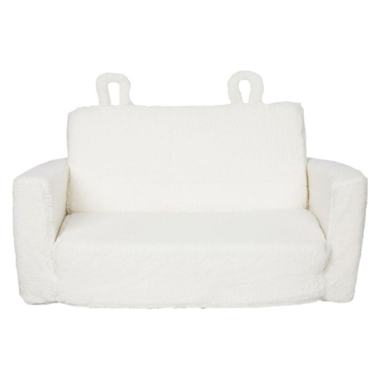 Dvoumístné dětské křesílko (pohovka) s heboučkým béžovým potahem dopřeje dětem pohodlí při hře i lenošení. Velké dětské křeslo je rozkládací a snadno je z pohovky proměníte v lehátko (matraci). Do praktické boční kapsy si děti mohou uložit oblíbenou knihu, časopis nebo drobné hračky. Roztomilá ouška usnadní manipulaci a křeslu propůjčují podobu velkého medvídka. Potah lze z dětského křesla sejmout..