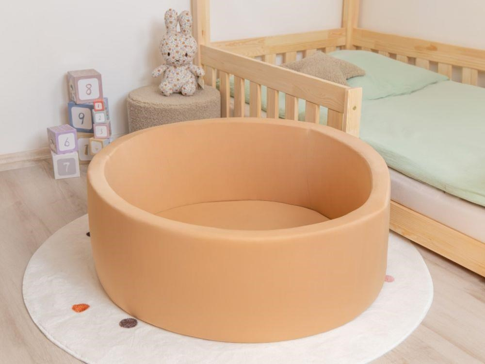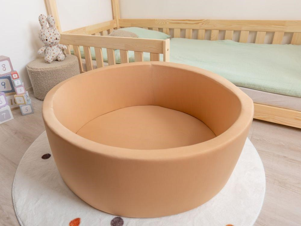 Dětský suchý bazének kulatý, v neutrální béžové barvě, o rozměru 90 x 30 cm je vhodný pro holčičky i chlapce do dětského pokoje, dětské herničky nebo hracího koutku. Tato dětmi oblíbená, měkká a bezpečná hračka dopřeje dětem spoustu zábavy a navíc přirozenou formou rozvíjí motorické dovednosti. Jedná se o samostatný bazén bez míčků..