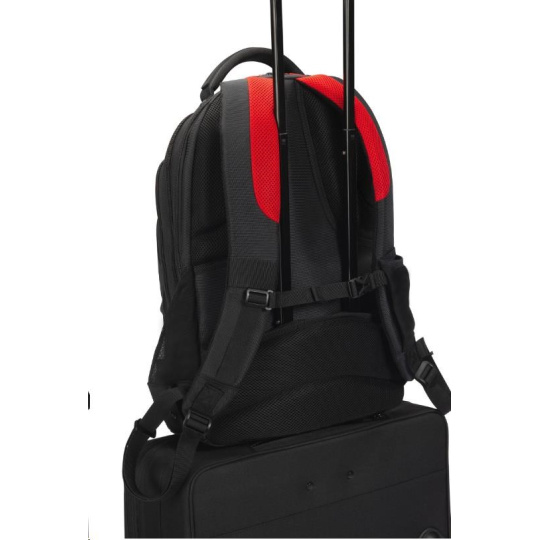 Skrytá kapsa na zadní straně slouží jako bezpečnostní kapsa a poutko na kolečkách