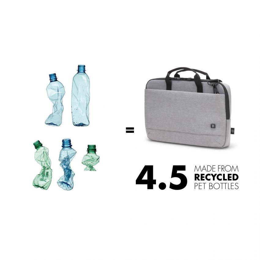 Laptop Case Slim Eco MOTION 10-11.6" Light Grey Light notebook case with protective padding Today's actions shape tomorrow's world. Which is why, here at DICOTA, we are dedicated to developing environmentally friendly solutions and therefore make all the items in our ECO collections out of sustainable, recycled PET. We reuse up to 31 PET bottles, so you will receive an environmentally friendly product with a life-long guarantee. Our PET products also have the quality, look and finish that you know and love. Specifications Art.no.: D31867-RPET EAN: 7640186418126 Weight: 0.45 kg Material: 600D RPET Polyester Warranty: Lifetime / 30 years Dimension: 330 x 42 x 230 mm Max. Device dimensions: 300 x 30 x 205 mm Characteristics • Made of 4.5 recycled PET bottles • Padded notebook compartment with high density foam (HDF) • Slip pocket for tablets up to 10.9" • Front pocket with storage space for mobile accessories • Document compartment on the back • Comfortable padded handle • Removable, adjustable shoulder strap • Water-repellent material.