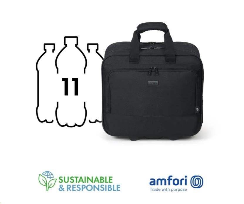 Eco Top Traveller BASE je inteligentní vozík pro profesionály, kteří dbají na životní prostředí. Je navržen pro každodenní použití a vybaven praktickými funkcemi, které vám usnadní život. Váš 13-16" notebook je vysoce chráněn v polstrované hlavní přihrádce. Dokonce i váš tablet s úhlopříčkou až 12,9" můžete bezpečně uložit do polstrované výsuvné kapsy. Velkorysá hlavní přihrádka nabízí úložný prostor pro oblečení a dokumenty. Prostorná přední přihrádka s praktickým a snadno přístupným pracovním místem pro mobilní příslušenství umožňuje uspořádat osobní věci pomocí držáků na předměty, jako jsou pera, vizitky, doklady a smartphone. Díky přihrádce na štítky s adresou je každá cesta bezproblémová a bez stresu. Vyztužená spodní část, kvalitní kolečka, teleskopická rukojeť z prvotřídních materiálů, jakož i odolný, vodu odpuzující hlavní materiál zajišťují dlouhotrvající přepravní komfort. Vozík Roller Eco Top Traveller BASE je pro vás ideální, pokud jste stále na cestách a chcete podpořit recyklaci PET lahví ekologickým vozíkem.