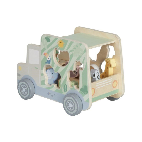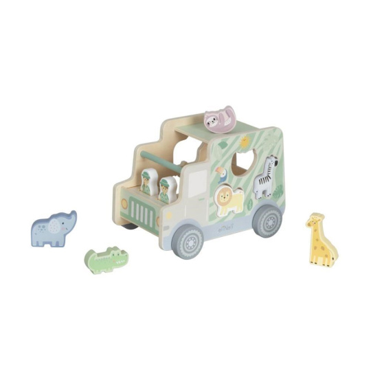 Dřevěné autíčko 2v1 nabízí spoustu možností ke hře. Velké autíčko je parádní hračkou samo o sobě, ale protože se jedná o multifunkční dětskou hračku, je zároveň i originální vkládačkou s dřevěnými vkládacími dílky v podobě zvířátek ze ZOO. Děti při nakládání zvířátek a při hře s autíčkem zdokonalují jemnou motoriku, koordinaci očí a rukou, logické myšlení..