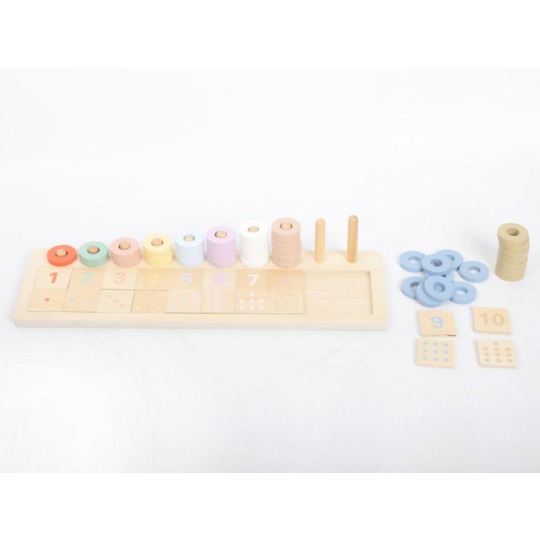Dřevěné nasazovací počítadlo je vzdělávací pomůckou navrženou v souladu s montessori principy. Barevné provedení respektuje barevnou paletu montessori, kvalitní přírodní materiály jsou zárukou odolnosti a dlouhé životnosti. Dřevěné počítadlo je multifunkční hračkou - nasazovací hrou, vkládačkou i vzdělávací pomůckou, která zdokonalí motorické dovednosti, koordinaci očí a rukou, naučí děti poznávat barvičky a počítat..