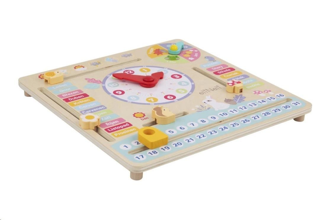 Dřevěný kalendář pro děti v českém jazyce je krásnou hračkou i dekorací do dětského pokoje. Kalendář s lesními zvířátky provede děti celým rokem. Děti se za pomocí roztomilých zvířátek naučí rozeznávat roční období, dny v týdnu i v měsíci, měsíce v roce a dokonce poznávat čas. Uprostřed kalendáře jsou totiž umístěné velké hodiny s červenými ručičkami.