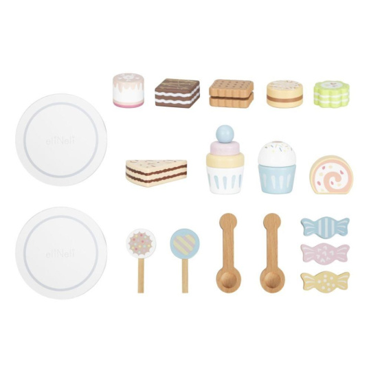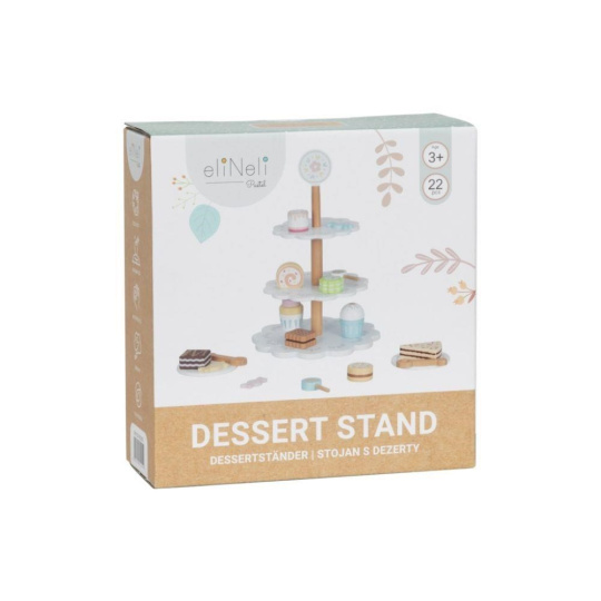 Dřevěný patrový stojan s lahodně vypadajícími dřevěnými zákusky a cukrovinkami je jako stvořený pro oslavy a čajové dýchánky uspořádané pro rodiče, kamarády i oblíbené plyšáky. Dřevěný stojan s bohatým příslušenstvím je skvělým doplňkem do dětské kuchyňky i obchůdku. Děti si mohou zahrát na cukráře i prodavače, rozvíjet svou fantazii a zdokonalovat dovednosti..