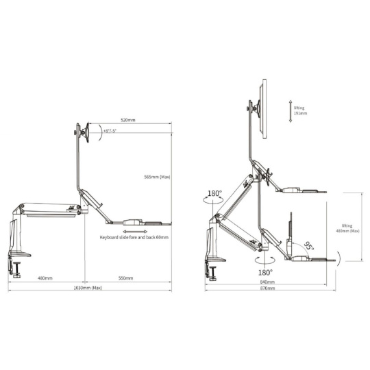 Držák monitoru a klávesnice NB NB35 Profesionální stolní držák na monitor 17-30" s poličkou na klávesnici 560x200mm, výškové polohování +/-480mm, naklápění +12°/-15°, otáčení +/-180°, pivot, možnost vysunutí a zaklopení police, přihrádka, 2x USB 3.0 porty, práce v sedě i vestoje, VESA 75x75 a 100x100, nosnost 9kg Univerzální stolní držák na monitor 17-30" a klávesnici pro ergonomické kanceláře, který Vám umožní kdykoliv změnit pozici pro práci jak vsedě tak i vestoje. Změna pozice je velmi snadná a rychlá, bez použití jakéhokoliv nářadí nebo složitého přenastavování - během okamžiku změníte výšku až o 480mm. Na držák je možné uchytit všechny typy monitorů s VESA standardem 75x75 nebo 100x100. Držák umožňuje snadné kompletní nastavení dle potřeby - otáčení do stran, výšková polohovatelnost, náklon obrazovky, posun a náklon police, vzdálenost od stolního uchycení, korekce roviny. Kvalitní duální úchyt pro zajištění na okraji stolu a perfektní fixaci. Profesionální kvalita, vynikající zpracování, krásný design a velmi snadné nastavení. Barevné provedení černé. Profesionální polohovatelný držák monitoru a klávesnice pro práci jak vsedě tak i vestoje NB NB35 Technické údaje: maximální zatížení 9kg minimální zatížení 2kg podporuje VESA standardy 75x75 a 100x100 možnost rozšíření VESA standardu na 200x100 nebo 200x200 ideální na monitory a televizory s úhlopříčkou 17-30" otáčení do stran +/- 180° náklon monitoru -12° / +15° funkce pivot - možnost polohy monitoru na šířku nebo na výšku maximální výška 950mm od stolové desky maximální délka od uchycení 1020mm celkové výškové nastavení +/- 480mm úprava výšky samotného monitoru na držáku 100mm police na klávesnici s rozměry 560x200mm možnost vysunutí police +/- 60mm, naklopení +/- 12°, možnost úplného zaklopení uchycení na okraj stolu, duální úchyt, na desky o síle 20-90mm 2x USB 3.0 port barevné provedení černé profesionální kvalita, snadná polohovatelnost záruka 3 roky Pracovní stanice - polohovatelný držák na monitor a klávesnici pro volbu, zda chcete pracovat vsedě nebo vestoje NB NB35Polohovatelný držák na monitor i klávesnici, výškové nastavení pro možnost práce vsedě nebo vestoje, snadné a rychlé polohování - Fiber Mounts NB35 Držák podporuje VESA standardy: VESA 75x75 VESA 100x100 Držák je vhodný pro uchycení všech typů monitorů a televizorů s úhlopříčkou 17-30", které podporují některý z výše uvedených VESA standardů a jejichž hmotnost je v rozmezí 2-9kg..