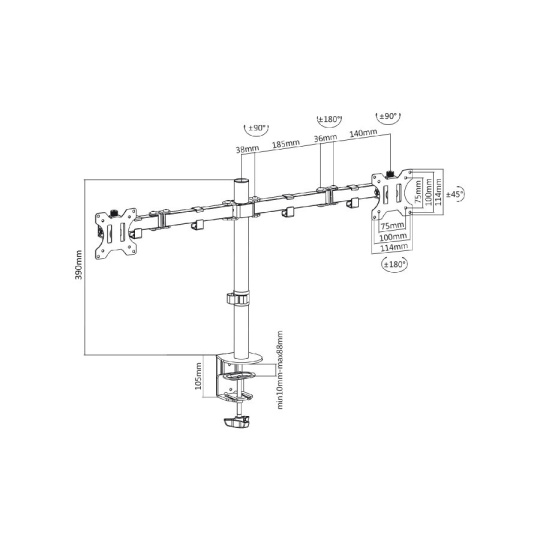 Stolní držák na 2 monitory 15-30", otáčení, naklápění, nastavení vzdálenosti a výšky, VESA 75 / 100, vedení kabeláže, nosnost 16kg.... více