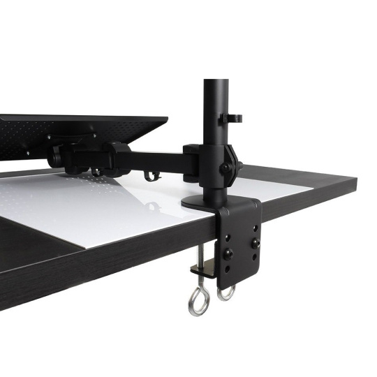 Držák notebooku nebo laptopu a monitoru Fiber Mounts FM23 Kvalitní sestava stolní držák na monitor 15-27" a držák na notebook laptop 13-17", polohovatelný, stabilní a pevný Vybavte si kancelář skvělým pomocníkem, který Vám uspoří spoustu místa a zlepší ergonomii při práci. Sestava Fiber Mounts FM23 obsahuje držák na monitory 15-27" a držák na notebooky nebo laptopy s úhlopříčkou 13-17". Držák monitoru podporuje VESA 75x75 a 100x100, lze ho otáčet do stran, naklápět, rotovat a výškově polohovat. Držák notebooku lze otáčet do stran a výškově polohovat. Barevné provedení černé, celková nosnost 20kg, celokovová konstrukce. Stolní držák na monitor a notebook do vaší kanceláře - Fiber Mounts FM23 Technické údaje: nosnost 20kg na monitory 15-27" na notebooky 13-17" VESA standard 75x75 a 100x100 otáčení do stran +/- 135° naklápění monitoru +/- 90° uchycení na stolové desky s tloušťkou 10-100mm barva černá záruka 3 roky Stolní držák na monitor a notebook do vaší kanceláře - Fiber Mounts FM23 Držák na monitory podporuje standardy VESA: VESA 75x75 VESA 100x100.