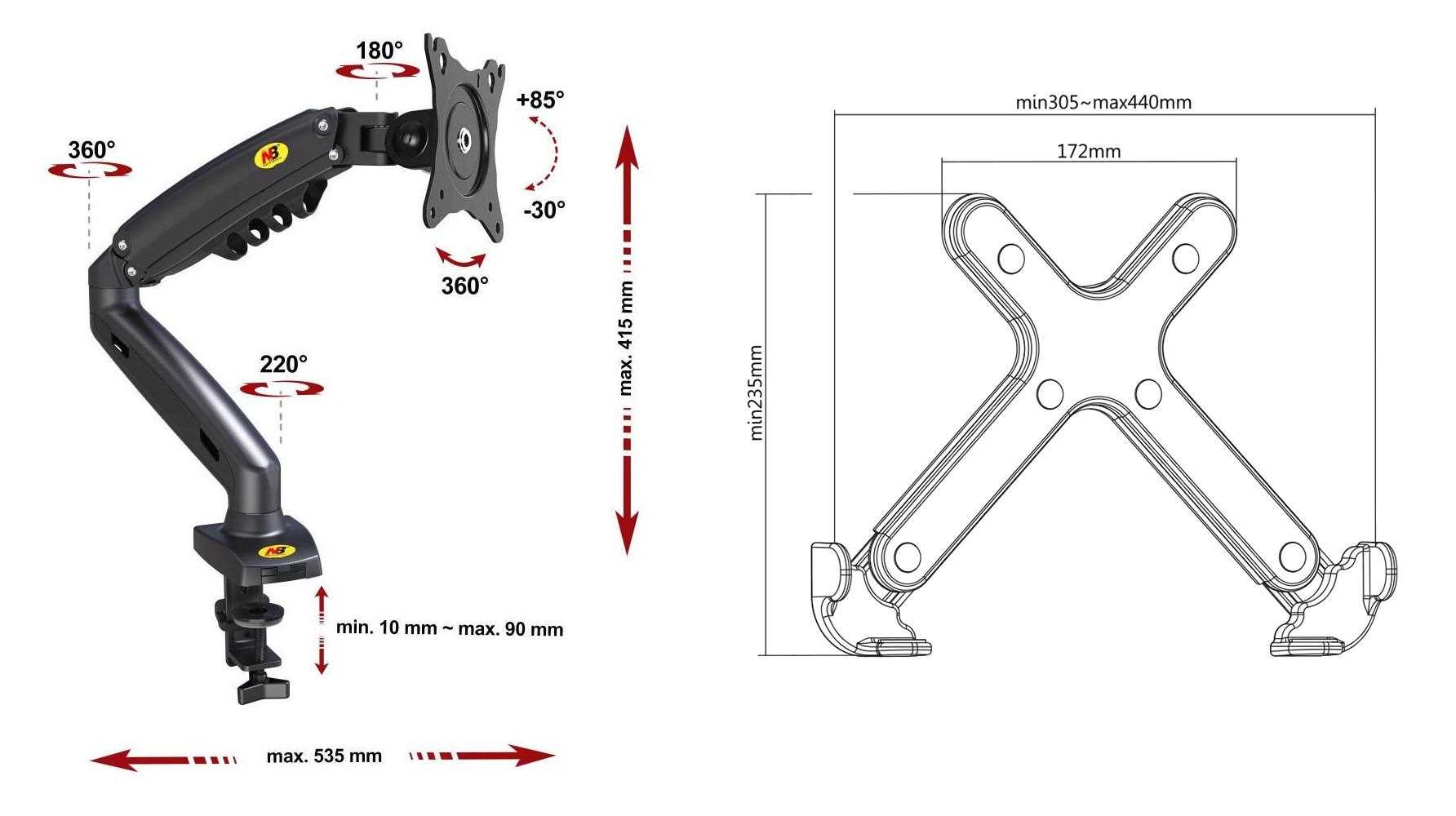 Stolní držák na notebook laptop Fiber Mounts 836F80 Kvalitní stolní držák na notebook nebo laptop 11-17,1", výškové polohování 165-415mm, otočný +/-180°, náklon notebooku 0° až -90°, vzdálenost od uchycení 0-535mm, vedení kabeláže, nosnost 9kg Unikátní systém pro uložení notebooku a jeho snadnou a rychlou polohovatelnost. Držák Vám umožní notebook výškově polohovat, otáčet do stran, měnit místo na stole kdykoliv, snadno, rychle a pohodlně. Držák je velmi přívětivý ohledně nastavitelnosti. Vhodný je pro uložení jakéhokoliv notebooku s hmotností až 9kg. Na držáku jsou krytky pro možnost skrytého vedení kabeláže. Možnost uložení notebooku nebo laptopu uvítá každý, kdo s ním denně pracuje - nastavení polohy obrazovky notebooku do úrovně očí (účinné proti bolesti zad, páteře a hlavy). Možnost kombinovat i s držákem monitoru F80 a v případě používání druhého monitoru sjednotit výšku obrazovky notebooku s monitorem. Stolní držák na notebook laptop do kanceláře pracovny nebo dětského pokoje Fiber Mounts 836F80 Technické údaje: max. zatížení 9kg uchycení jakéhokoliv notebooku laptopu velikosti 11" až 17,1" šířka notebooku musí být v rozmezí 280mm až 440mm výšková polohovatelnost 250mm (165-415mm) nastavení vzdálenosti od stolního uchycení až 535mm otáčení do stran bez omezení +/- 180° nastavení náklonu notebooku 0° (vodorovně) až -90° (svisle) snadná korekce roviny rychlá a snadná změna polohy notebooku na stole uchycení držáku na hranu stolové desky nebo skrz stolovou desku šroubem vynikající kvalita systém pro skryté vedení kabeláže 2 typy uchycení na stolovou desku (na okraj nebo do prostoru) barva černá záruka 3 roky.