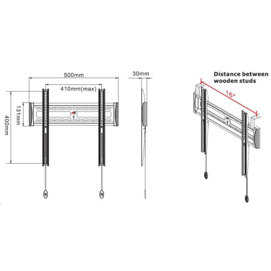Fixní držák na LCD LED a plazmové Tv 32-55", vzdálenost od zdi 30mm, nosnost 45kg Televizní držák vynikající kvality, navíc za naprosto bezkonkurenční cenu. Pevný držák na LCD LED a plazmové televize, které mají úhlopříčku 32" až 55" a jejichž hmotnost není vyšší než 45kg. Tento držák má VESA standardy 100x100, 200x100, 200x200. 300x200, 300x300, 400x200, 400x300 a 400x400mm a jeho kvalita je potvrzena zkušebnou TuV GS. Výrobní proces tohoto držáku je standartizován ISO 9001. Držák na Tv do 50" Fiber Mounts C2F je vyroben z ocely. Zavěšní televizoru je snadné, rychlé a hlavně bezpečné díky systému click-connect. Na tento držák televizi zavěsíte opravdu během okamžiku, stejně rychlé je i sundání televizoru - stačí zatáhnout za 2 táhla, ty uvolní zajištění a televizi nadzvednutím snadno uvolníte. Pokud zakoupíte 2 tyto držáky, můžete velmi snadno a rychle přenášet televizor na dvě místa a zavěšení pro Vás nebude žádný problém. Televizní držák pro pevné fixní zavěšení obrazovky na zeď - Fiber Mounts C2F Technické údaje: maximální zatížení držáku 45kg doporučená úhlopříčka televize 32" - 55" VESA standardy 100x100 až 400x400 vzdálenost televizoru od zdi je 30mm certifikovaný držák TuV GS, výroba dle ISO 9001 velmi rychlé a bezpečné upnutí televize na držák, stejně snadné uvolnění pomocí 2 táhel velmi kvalitní a pevná konstrukce z ocely barva černá záruka 5 let.