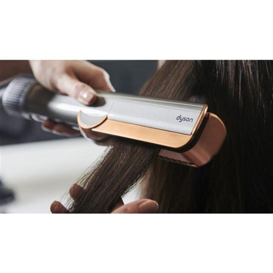 Dyson Airstrait HT01 ceramic pink/rose gold Narovnávání vlhkých vlasů vysoušením pomocí proudu vzduchuŽádné rozpálené žehlící destičky. Žádné poškození vysokou teplotou.Motor Dyson HyperdymiumRotor s 13 lopatkami se otáčí rychlostí až 106 000 ot./min, pohání přes 11,9 litru vzduchu za sekundu skrze motor. To vytváří tl... více