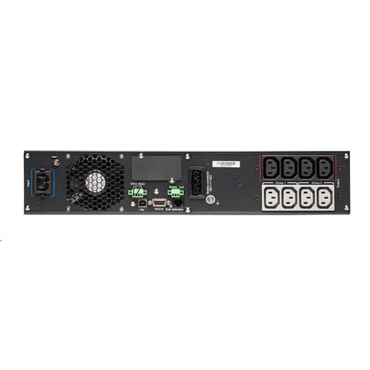 | Komunikace | USB port (kompatibilní s HID) Sériový port (RS232) Mini svorkovnice pro dálkové zapnutí / vypnutí (ROO) Mini-svorkovnice pro vzdálené vypnutí napájení (RPO) Mini svorkovnice pro výstupní relé Bezpotenciálové kontakty (3 výstupy, 1 vstup, optočlen, DB9) Komunikační karta |