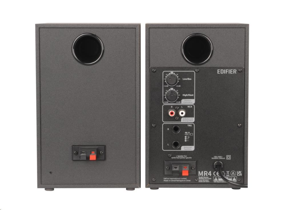 - 1-inch silk dome tweeter and 4-inch diaphragm woofers deliver pure sound