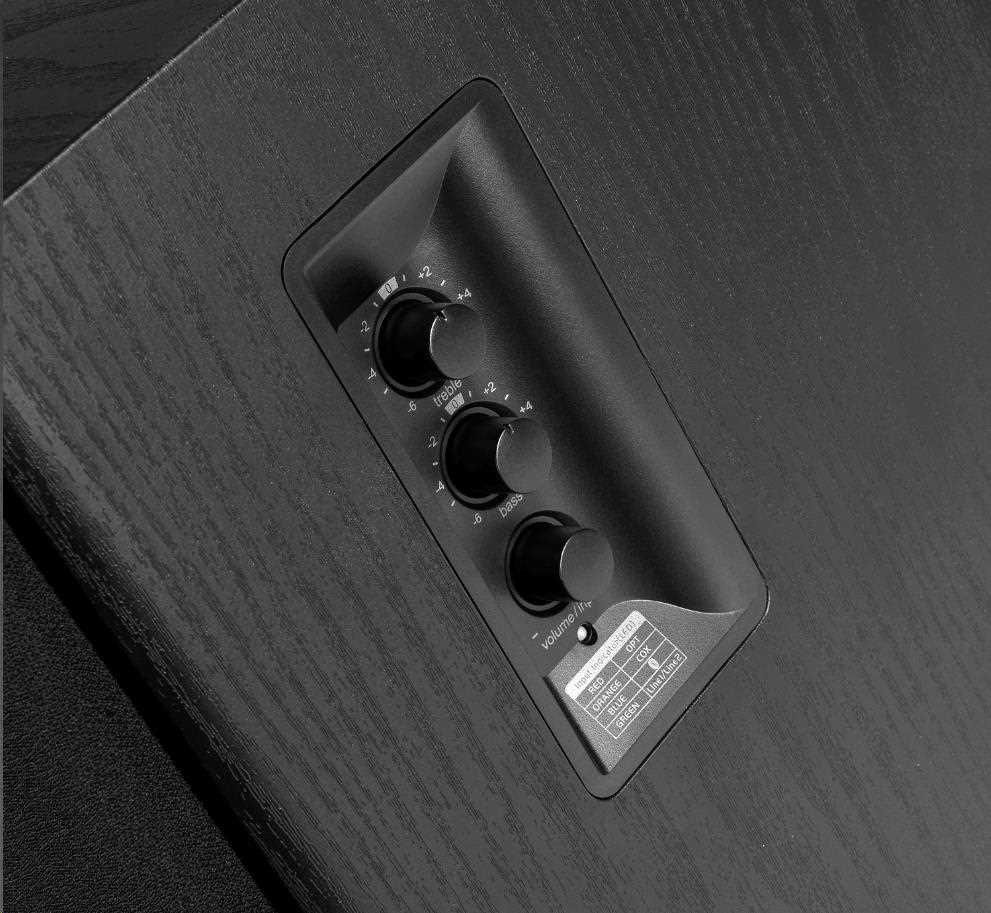 Na bočním panelu najdete knoflíky pro nastavení výšek a basů, které potřebujete k tomu, abyste si reproduktory nastavili přesně tak, jak je chcete, a navíc na přední straně skříně najdete kalibrovaný reflexní basový port. Systém zesilovače třídy D s digitálním zpracováním signálu a technologií elektronického ovládání tónu vám poskytne extra hudební zážitek.