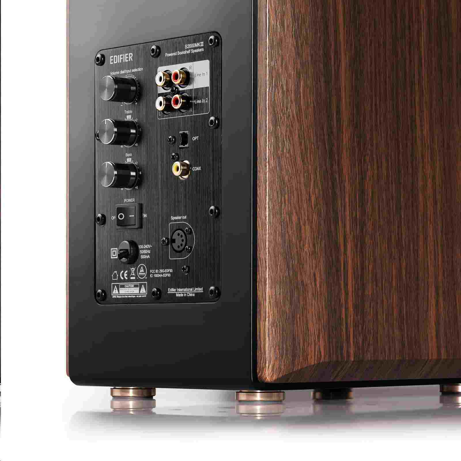Souprava aktivních monitorů S2000MKIII upoutá pozornost kombinací matné černé barvy s luxusním dřevěným povrchem a je speciálně navržena pro nahrávání a mixování hudby. S2000MKIII monitory disponují nejen zajímavým designem, ale i kvalitním zpracováním zvuku. Zabudované výškové reproduktory s plochou membránou se jednoduše přizpůsobí širokému spektru akustických podmínek. Ovládání na zadní straně monitoru umožňuje přizpůsobení základních funkcí. Bluetooth technologie zajišťuje dálkové připojení k různým audio zdrojům. S2000MKIII navíc disponují optickými či koaxiálními vstupy a praktickým OLED LCD displejem. K dispozici je také možnost ovládání prostřednictvím dálkového ovladače.