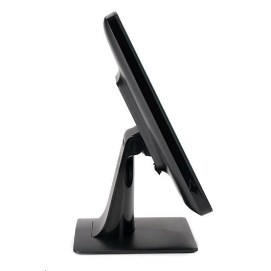 " Velmi stabilní naklápěcí základna; ovládací panel po stranách (proti nechtěným změnám nastavení), není vidět z pozice zákazníka a nevytváří tak rušivý dojem