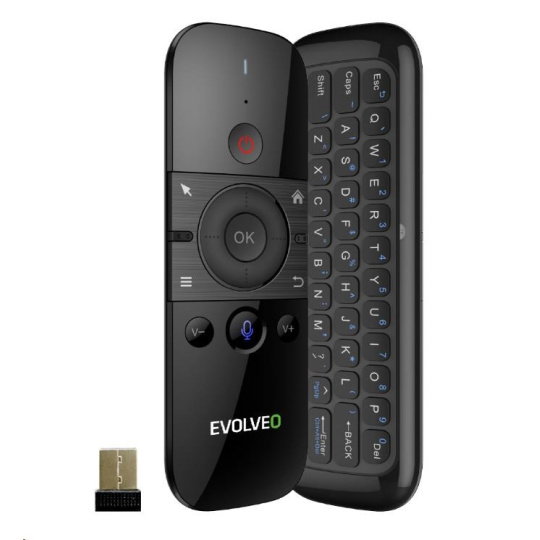 | Obsah balení | - Ovladač EVOLVEO FlyMotion D1 - 2.4 GHz USB adaptér - bezdrátový přijímač/vysílač - Napájecí kabel - Uživatelský manuál |