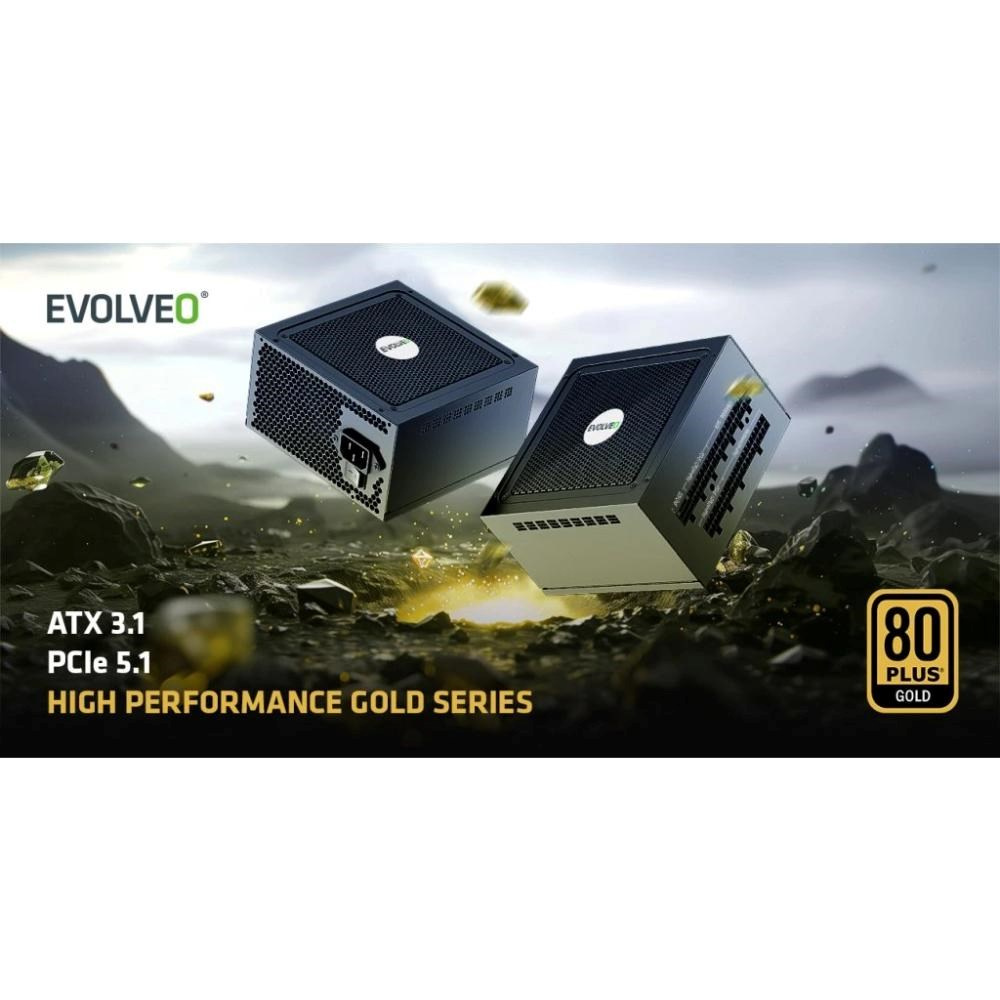 EVOLVEO G650 zdroj 650W, 80+ GOLD, ATX 3.1, aPFC, 140 mm ventilátor