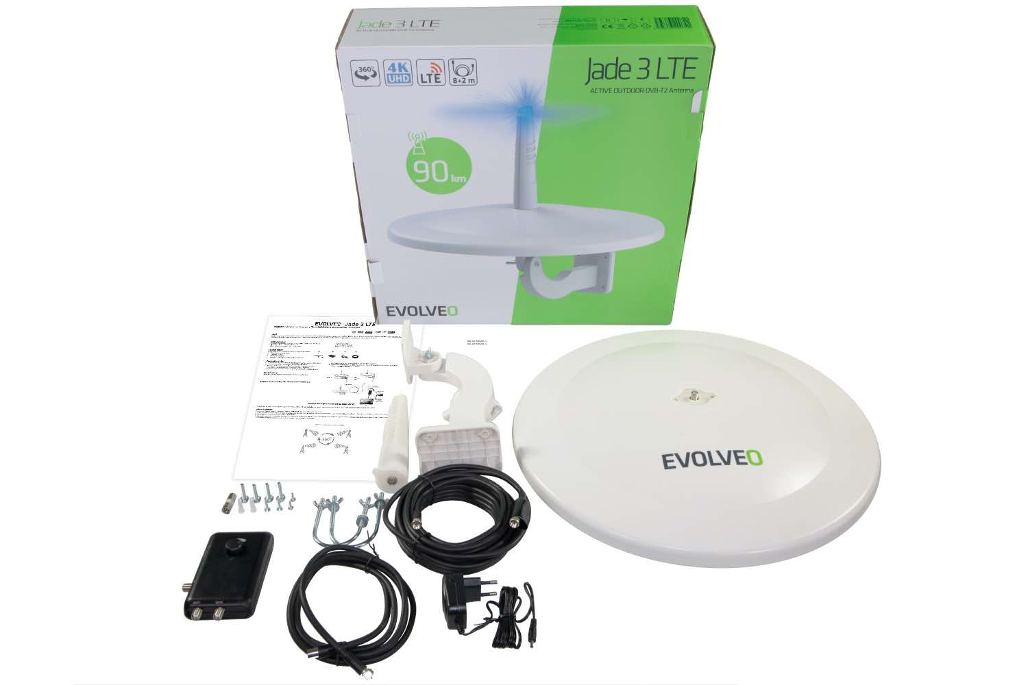 EVOLVEO Jade 3, aktivní venkovní anténa FM/DAB+/DVB-T2, filtr LTE,4G,5G