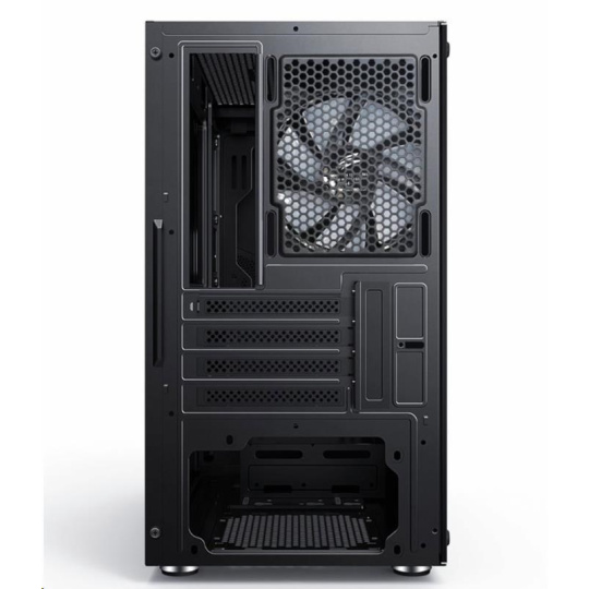 Herní mATX skříň s instalovanými RGB rainbow 120 mm ventilátoremy a bočnicí z temerovaného skla. Skříň je určená pro základní desky podporující platformu Intel i AMD. Mimo formátu mATX je kompatibilní i s formátem Mini ITX. Napájecí zdroj se umísťuje do dolní části skříně. Spodní mřížka je osazena vysouvacím prachovým filtrem. Ovládání ventilátorů je možné pomocí připojení k základní desce.