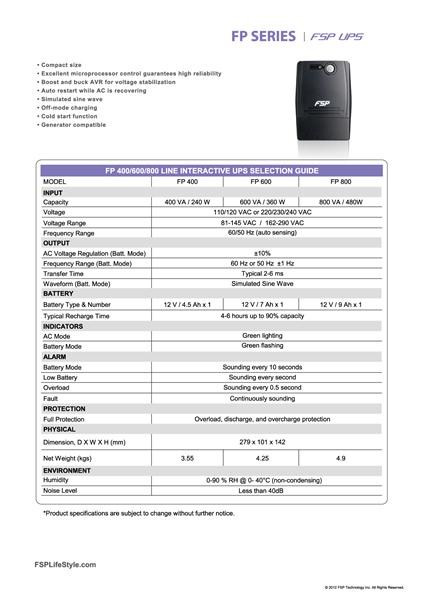 Fortron UPS FSP FP 600, 600 VA, line interactive