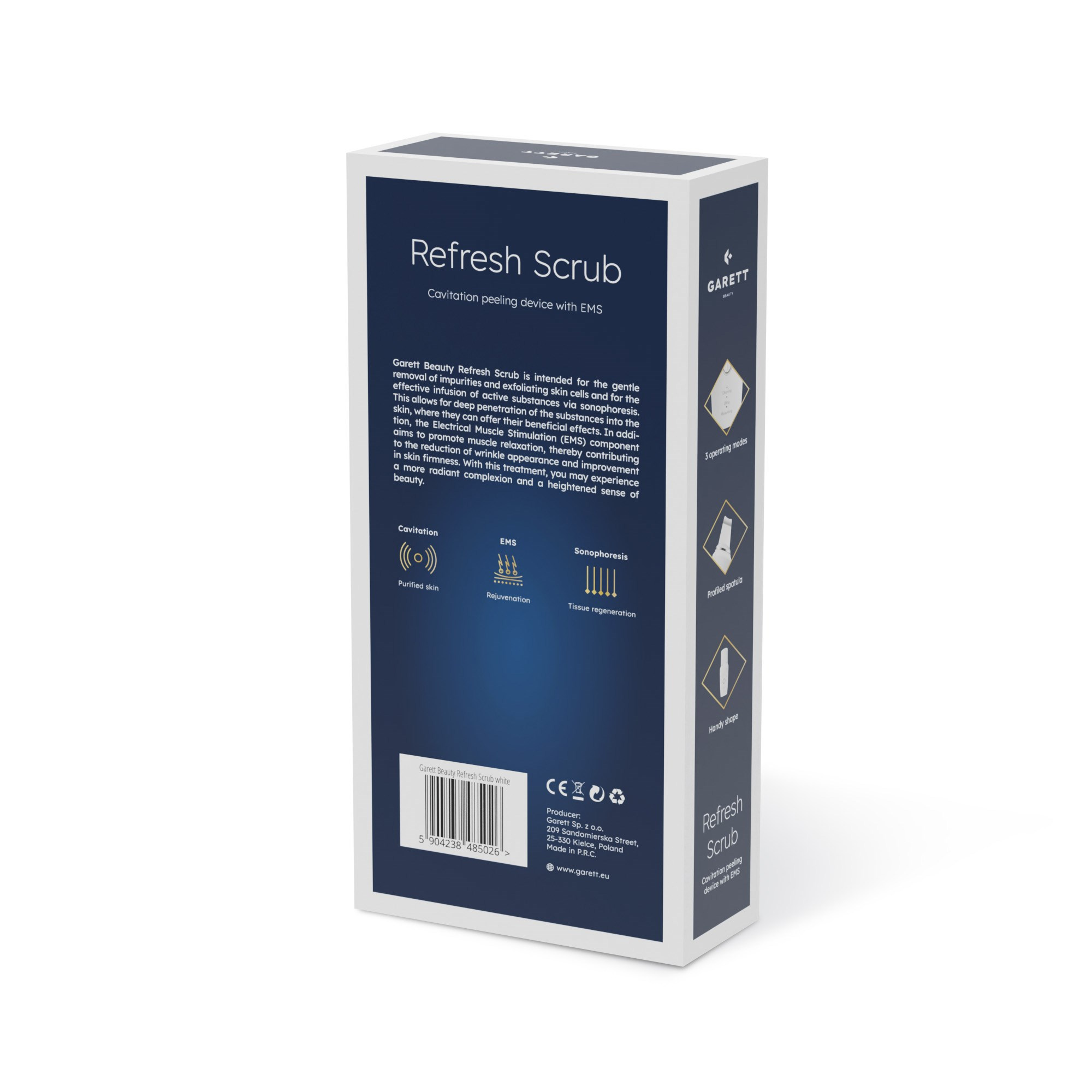 Díky ultrazvukovým vlnám o frekvenci až 26 000 Hz Garett Beauty Refresh Scrub odstraňuje odumřelé buňky, nečistoty a přebytečný maz a odhaluje zářivou pleť. Pravidelné používání zlepšuje prokrvení, metabolismus a snižuje otoky. Dopřejte si hladkou, svěží pleť bez námahy.