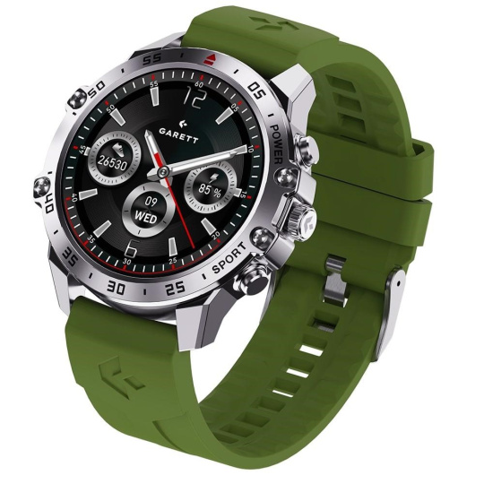 - Sada obsahuje: GARETT smartwatch, přídavný silikonový pásek, nabíjecí kabel, QSG návod