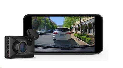 Kamera umožňuje snadno a bezpečně sdílet důležitá videa. Díky předplatnému Vault a připojení Wi-Fi® jsou uložené videoklipy přístupné v Garmin Drive aplikaci na kompatibilním telefonu.