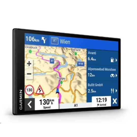 Hlasový asistent v navigaci Garmin DriveSmart reaguje na vyslovené požadavky a navede vás tam, kam potřebujete (asistent není k dispozici v českém jazyce). (Hlasový asistent je k dispozici v angličtině, francouzštině, němčině, italštině, španělštině, dánštině, švédštině a nizozemštině).