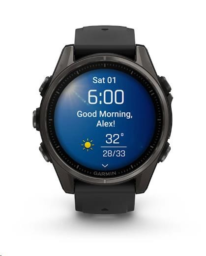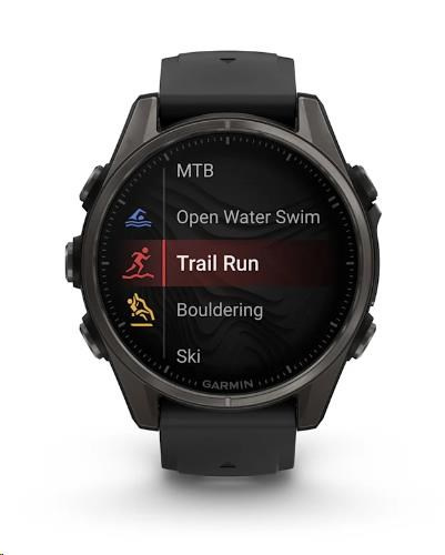Garmin fenix® 8 – 43 mm, AMOLED, Sapphire, Carbon grey DLC titanium, Black / Pebble grey se silikonovým řemínkem, EU
