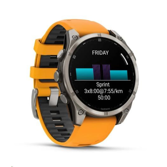 Garmin fenix® 8 – 47 mm, AMOLED, Sapphire, Titanium s Orange/Graphite silikonovým řemínkem, EU