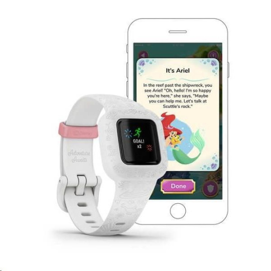 PŘÍBĚHY a DOBRODRUŽSTVÍ - S barevnými řemínky Blue Stars, Digi Camo nebo Lilac Floral budou děti objevovat nová fascinující místa, řešit zajímavé hádanky a zapisovat si do sešitu vzpomínky na úžasná dobrodružství. Uvidí pyramidy starověkého Egypta, naučí se cviky pro zahřátí v mrazivé Antarktidě nebo se setkají se žraloky na Velkém bariérovém útesu. Nákupem nového řemínku získáte přístup k novým dobrodružstvím v aplikaci (aktivační kód je součástí balení s novým řemínkem). Příběh odpovídá motivu řemínku a vše můžete spravovat v rodičovské mobilní aplikaci a rozhodnout, co se bude dít dnes. S řemínkem s Černým panterem nebo Iron-Manem děti při dosažení denního cíle (60 minut aktivity) postupují ságou Infinity, dobrodružstvím studia Marvel, která je inspiruje k lepším výkonům. S vaší pomocí děti vstoupí do nových dobrodružství a prožijí vzrušující chvíle ze ságy Infinity společně se svými oblíbenými hrdiny studia Marve. S řemínkem z řady Disneyovských princezen mohou objevovat nová dobrodružství a kouzelný svět princezen Ariel, Belly, Jasminy, Mulan a Lociky. Pomohou Locice a Flynnovi Rychlíkovi utéci před stařenou Gothel, společně s Mulan zachrání císaře nebo s Jasminou prozkoumají Jeskyni zázraků. Budou pomáhat Avengerům kazit Lokiho ničivé plány, zachraňovat svět před Ultronem nebo cestovat kvantovým světem, získávat Kameny nekonečna a bojovat s Thanosem. Čím lépe si plní (případně překračují) cíle denní aktivity, tím větší část příběhu uvidí.