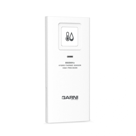 Sedmikanálové bezdrátové čidlo GARNI 055H 2GEN pro měření teploty a relativní vlhkosti, určeno pro Wi-Fi meteorologickou stanici GARNI 3015 Arcus, GARNI 3015 Arcus 2GEN, GARNI 2055 Arcus, GARNI 2055 Arcus 2GEN, GARNI 2040 Arcus, GARNI 2040 Arcus 2GEN, GARNI 1085 Arcus, GARNI 1025 Arcus, GARNI 1025 Arcus 2GEN, GARNI 975, GARNI 935PC, GARNI 925T, GARNI 2060 Arcus, GARNI 3075 Arcus, hobby meteostanici GARNI 750, chytrý digitální teploměr s vlhkoměrem GARNI 419T, WiFi meteo bránu GARNI GTway Plus
