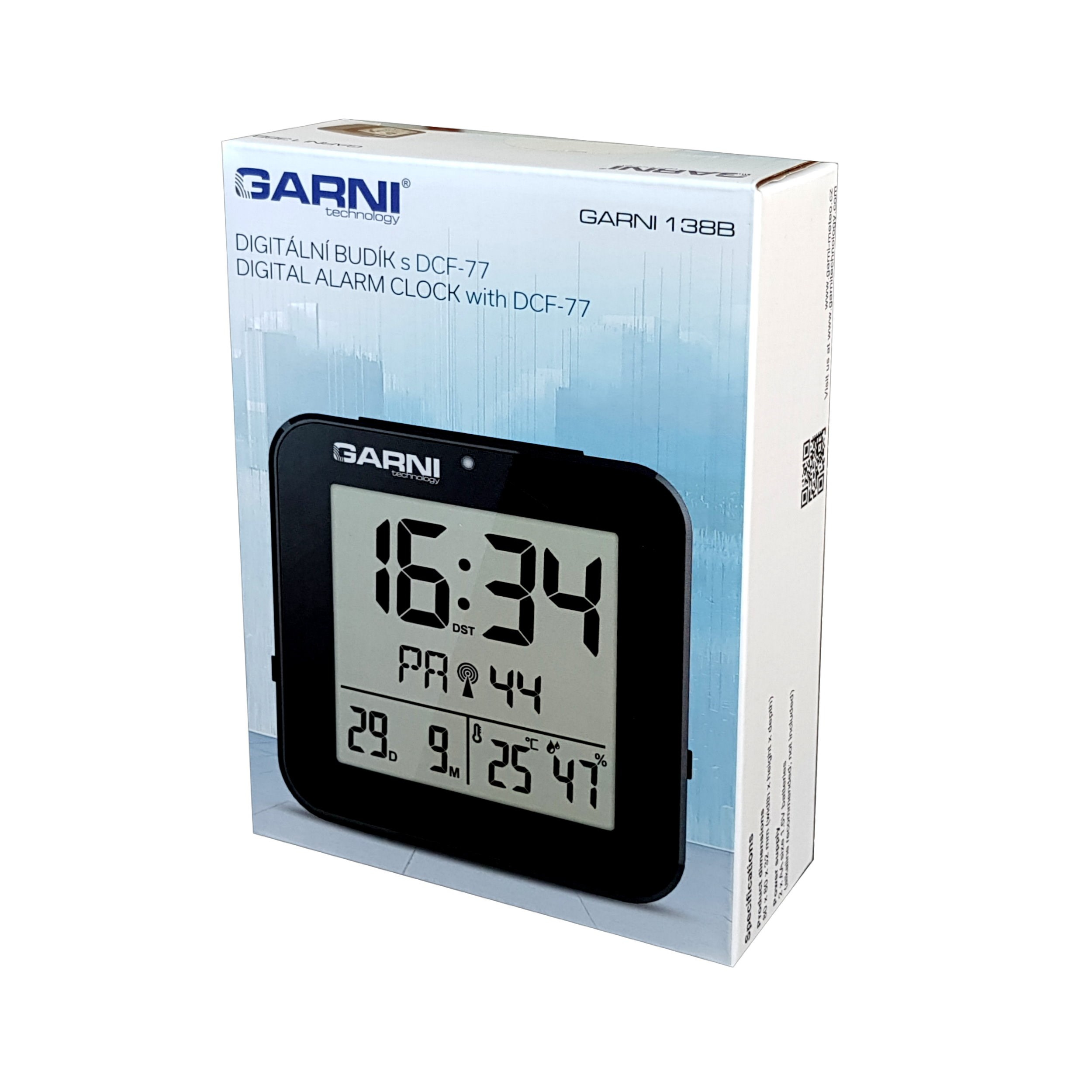 GARNI 138B - digitální budík s teploměrem a vlhkoměrem, černá