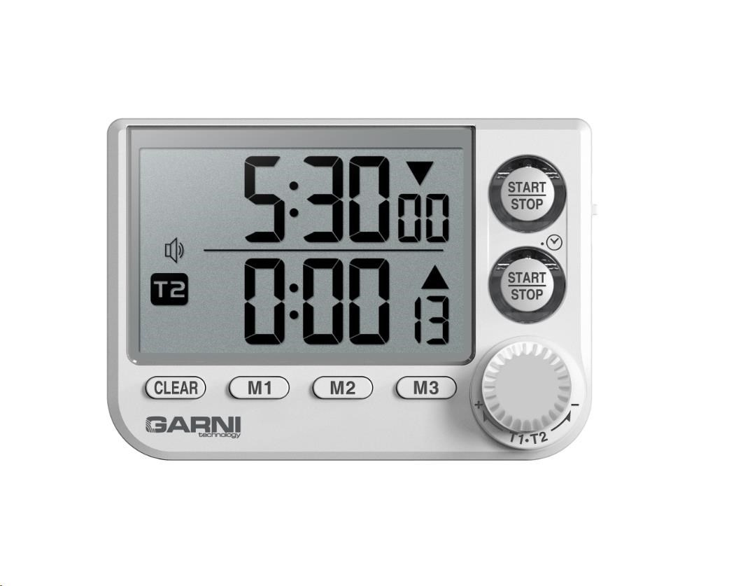 Časovač (minutka) se stopkami a hodinami s inteligentním otočným knoflíkem pro snadné a rychlé nastavení