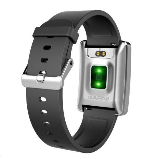 Sportovní fitness náramky a hodinky jsou užitečným společníkem ve vašem každodenním životě, měří a zaznamenávají vaše každodenní aktivity. S výrobkem, který je kombinací fitness náramku a hodinek, modelem GARNI Q-126HR budete mít přehled o počtu vašich kroků, celkové ušlé vzdálenosti, spálených kaloriích, tepové frekvenci, krevním tlaku, plnění nastavených cílů a dalších údajích týkajících se Vašich sportovních aktivit. Jde o užitečného pomocníka a to nejen při sportu. Hodinky Vás vibracemi diskrétně upozorní na příchozí telefonní hovor a SMS, jejichž část si můžete přečíst na 5 řádkovém displeji včetně jména odesílatele, nebo volajícího, pokud jej máte v seznamu, bez nutnosti vytažení mobilního telefonu. Také Vám dá vědět o činnosti na sociálních sítích. Můžete si nastavit buzení pomocí vibrací, také Vás upozorní na nutnost užití léků, na schůzku, upozorní na neaktivitu. GARNI Q-126HR disponuje krytím s certifikací IP67 pro odolnost proti prachu a stříkající vodě - modul s barevným 5 řádkovým IPS displejem o rozměrech 23 x 23 mm - materiál modulu je ze slitiny a displej je krytý odolným sklem - rozlišení displeje 240 x 240 px - materiál pásku TPU (termoplastický uretan) - spojení s mobilním zařízením pomocí Bluetooth 4.0 - dosah spojení s mobilním zařízením 10 m - ovládání jedním dotykovým tlačítkem - aplikace H Band je dostupná ke stažení v internetovém obchodě App Store (pro iOS verze 8 a novější) nebo Google Play (pro zařízení s technologií Bluetooth 4.0 a operačním systémem Android verze 5.1 a novějším) - sdílení sportovních výsledků prostřednictvím messengerů a sociálních sítí - volba 4 režimů - denní, spánek (automaticky), sport, stopky - zobrazení na náramku - datum, průběh plnění stanoveného cíle, stav baterie, ikona připojení k mobilnímu zařízení, aktuální čas, počet kroků, kalorie, tepová frekvence, krevní tlak, doba spánku - pokročilý menstruační kalendář (monitoruje jednotlivá fyziologická období ženy) - data sportovní aktivity - krokoměr, spálené kalorie, srdeční tep, čas strávený aktivitou - nastavení tichého buzení, upomínek, dosažení zadaného cíle aktivity, aktivity v sociálních sítích - nastavení vlastního profilu, cílů aktivit (kroky a spánek) - automatická aktivace a deaktivace režimu spánku - upozornění na užití léku, dlouhé neaktivity, připomínka setkání - vibracemi a oznámením na displeji vás náramek upozorní na příchozí hovory, SMS, aktivitu na sociálních sítích (Facebook, LINE, WhatsAPP, Twitter, WeChat, Skype, QQ message, Linkedin, Snapchat, Instagram, Gmail). Příchozí hovor lze odmítnout dlouhým podržením tlačítka. Krátkým stiskem tlačítka lze vypnout vyzvánění aktuálního příchozího hovoru na mobilním zařízení - na hlavní obrazovce aplikace je zobrazen přehled naměřených hodnot, jako je počet kroků, spálených kalorií, doba spánku, naměřená hodnota tepové frekvence a měření krevního tlaku (pokud je měření aktivováno). Možnost měření tepové frekvence celý den i ve spánku. Kliknutím na jednotlivé položky zobrazíte detaily měření. Aplikace nabízí zobrazení grafů pro režim sportu, spánku, měření krevního tlaku a tepovou frekvenci - celková data vykonané sportovní aktivity zobrazená v aplikaci - datum, celkový počet kroků, grafické zobrazení plnění nastaveného cíle, celková vzdálenost, naměřené hodnoty tepové frekvence včetně grafu a celkové spálené kalorie Upozornění: výsledky měření srdečního tepu a krevního tlaku jsou pouze informativního charakteru. Nenahrazují profesionální lékařské přístroje a nemohou být použity v lékařství - možnost nastavení rozsvícení displeje náramku gestem - magnetická USB nabíječka - výdrž Li-Pol baterie po nabití 7 dní (při běžném využití) - doba nabíjení Li-Pol baterie cca 1 až 2 hodiny - voděodolnost: krytí IP67 proti prachu a stříkající vodě - váha celého náramku s modulem 55 g Obsah balení: - modul s barevným TFT displejem a dotykovým tlačítkem - 1 černý pásek - nabíjecí magnetický USB modul.
