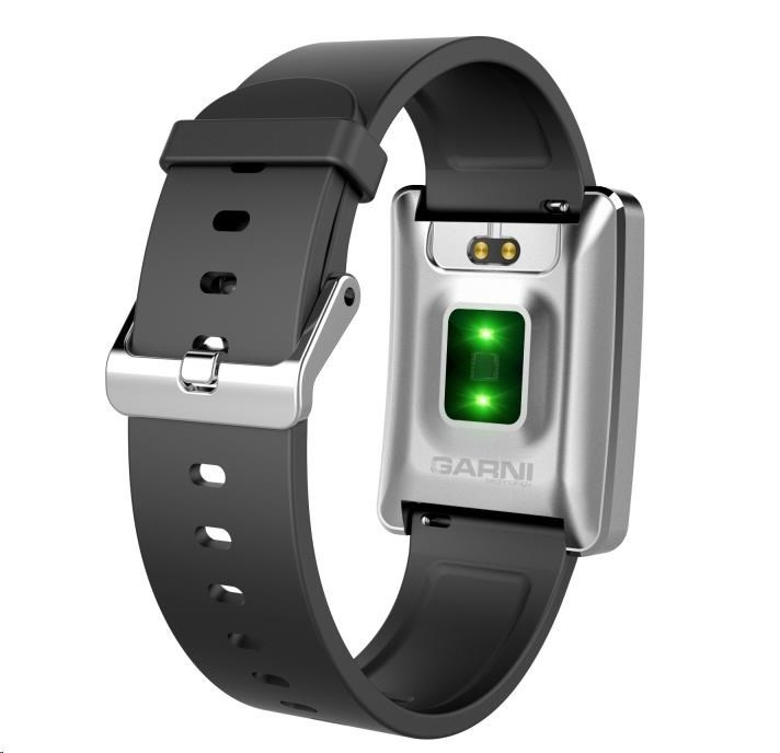 Sportovní fitness náramky a hodinky jsou užitečným společníkem ve vašem každodenním životě, měří a zaznamenávají vaše každodenní aktivity. S výrobkem, který je kombinací fitness náramku a hodinek, modelem GARNI Q-126HR budete mít přehled o počtu vašich kroků, celkové ušlé vzdálenosti, spálených kaloriích, tepové frekvenci, krevním tlaku, plnění nastavených cílů a dalších údajích týkajících se Vašich sportovních aktivit. Jde o užitečného pomocníka a to nejen při sportu. Hodinky Vás vibracemi diskrétně upozorní na příchozí telefonní hovor a SMS, jejichž část si můžete přečíst na 5 řádkovém displeji včetně jména odesílatele, nebo volajícího, pokud jej máte v seznamu, bez nutnosti vytažení mobilního telefonu. Také Vám dá vědět o činnosti na sociálních sítích. Můžete si nastavit buzení pomocí vibrací, také Vás upozorní na nutnost užití léků, na schůzku, upozorní na neaktivitu. GARNI Q-126HR disponuje krytím s certifikací IP67 pro odolnost proti prachu a stříkající vodě - modul s barevným 5 řádkovým IPS displejem o rozměrech 23 x 23 mm - materiál modulu je ze slitiny a displej je krytý odolným sklem - rozlišení displeje 240 x 240 px - materiál pásku TPU (termoplastický uretan) - spojení s mobilním zařízením pomocí Bluetooth 4.0 - dosah spojení s mobilním zařízením 10 m - ovládání jedním dotykovým tlačítkem - aplikace H Band je dostupná ke stažení v internetovém obchodě App Store (pro iOS verze 8 a novější) nebo Google Play (pro zařízení s technologií Bluetooth 4.0 a operačním systémem Android verze 5.1 a novějším) - sdílení sportovních výsledků prostřednictvím messengerů a sociálních sítí - volba 4 režimů - denní, spánek (automaticky), sport, stopky - zobrazení na náramku - datum, průběh plnění stanoveného cíle, stav baterie, ikona připojení k mobilnímu zařízení, aktuální čas, počet kroků, kalorie, tepová frekvence, krevní tlak, doba spánku - pokročilý menstruační kalendář (monitoruje jednotlivá fyziologická období ženy) - data sportovní aktivity - krokoměr, spálené kalorie, srdeční tep, čas strávený aktivitou - nastavení tichého buzení, upomínek, dosažení zadaného cíle aktivity, aktivity v sociálních sítích - nastavení vlastního profilu, cílů aktivit (kroky a spánek) - automatická aktivace a deaktivace režimu spánku - upozornění na užití léku, dlouhé neaktivity, připomínka setkání - vibracemi a oznámením na displeji vás náramek upozorní na příchozí hovory, SMS, aktivitu na sociálních sítích (Facebook, LINE, WhatsAPP, Twitter, WeChat, Skype, QQ message, Linkedin, Snapchat, Instagram, Gmail). Příchozí hovor lze odmítnout dlouhým podržením tlačítka. Krátkým stiskem tlačítka lze vypnout vyzvánění aktuálního příchozího hovoru na mobilním zařízení - na hlavní obrazovce aplikace je zobrazen přehled naměřených hodnot, jako je počet kroků, spálených kalorií, doba spánku, naměřená hodnota tepové frekvence a měření krevního tlaku (pokud je měření aktivováno). Možnost měření tepové frekvence celý den i ve spánku. Kliknutím na jednotlivé položky zobrazíte detaily měření. Aplikace nabízí zobrazení grafů pro režim sportu, spánku, měření krevního tlaku a tepovou frekvenci - celková data vykonané sportovní aktivity zobrazená v aplikaci - datum, celkový počet kroků, grafické zobrazení plnění nastaveného cíle, celková vzdálenost, naměřené hodnoty tepové frekvence včetně grafu a celkové spálené kalorie Upozornění: výsledky měření srdečního tepu a krevního tlaku jsou pouze informativního charakteru. Nenahrazují profesionální lékařské přístroje a nemohou být použity v lékařství - možnost nastavení rozsvícení displeje náramku gestem - magnetická USB nabíječka - výdrž Li-Pol baterie po nabití 7 dní (při běžném využití) - doba nabíjení Li-Pol baterie cca 1 až 2 hodiny - voděodolnost: krytí IP67 proti prachu a stříkající vodě - váha celého náramku s modulem 55 g Obsah balení: - modul s barevným TFT displejem a dotykovým tlačítkem - 1 černý pásek - nabíjecí magnetický USB modul.