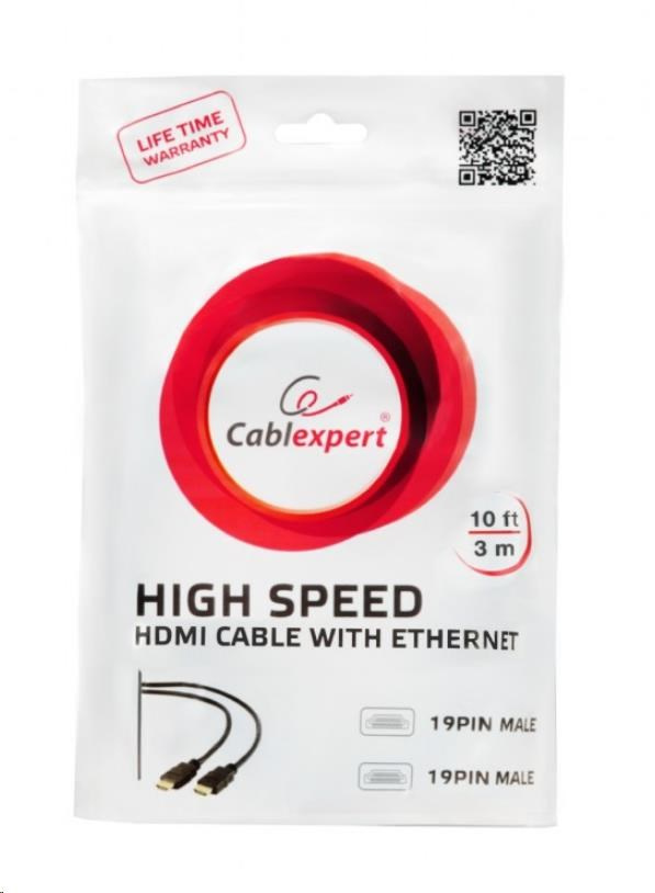 GEMBIRD Kabel HDMI-HDMI 3m, 1.4, M/M stíněný, zlacené kontakty, bílý