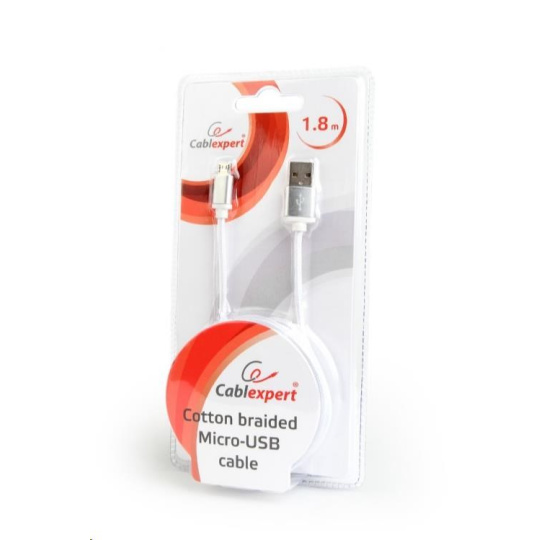 GEMBIRD Kabel MicroUSB - USB, opletený, stříbrný, 180cm
